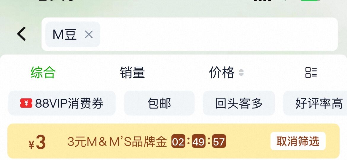 猫超搜“M豆”领3元卡