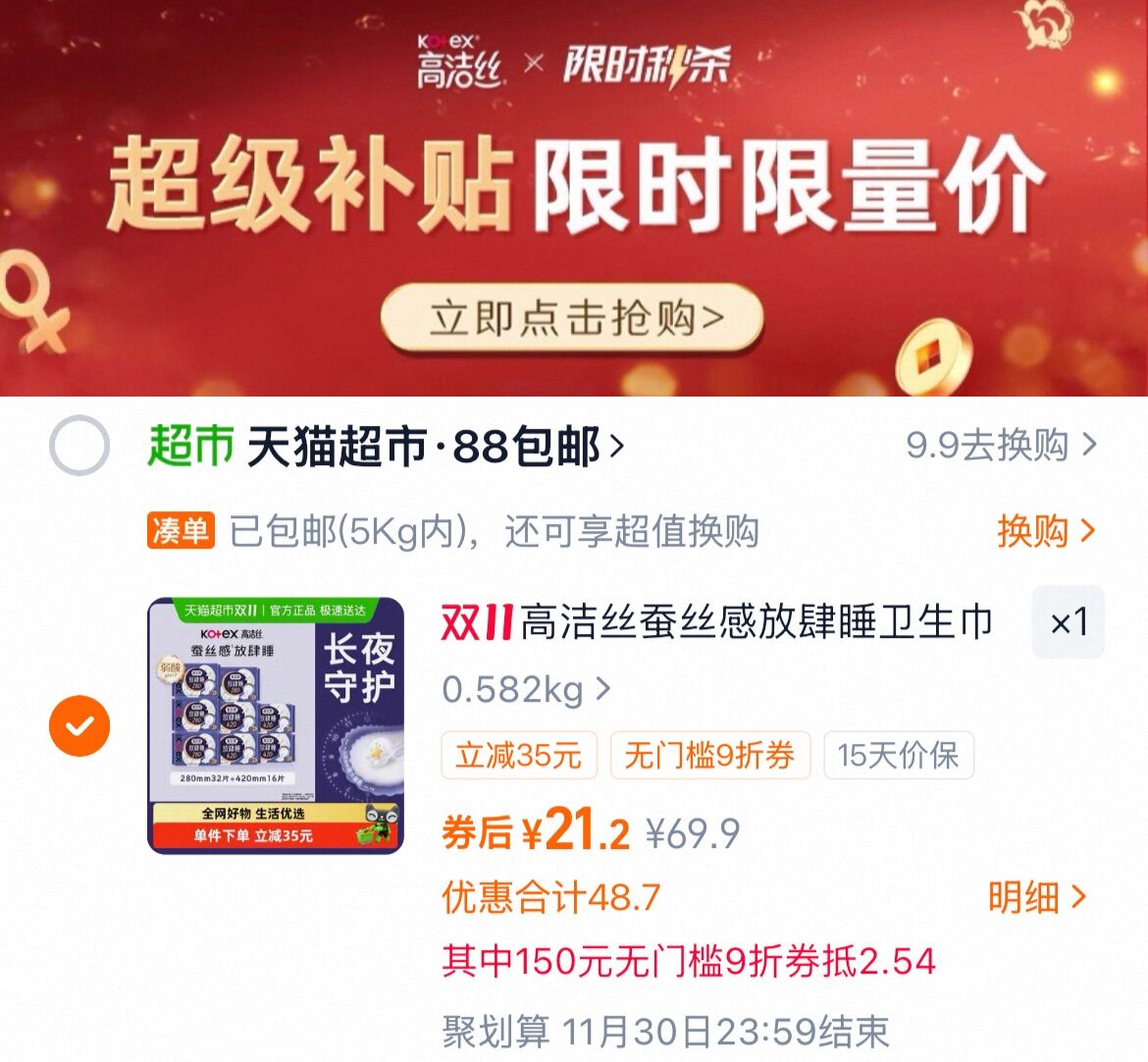 高洁丝 夜用卫生巾组合共48片