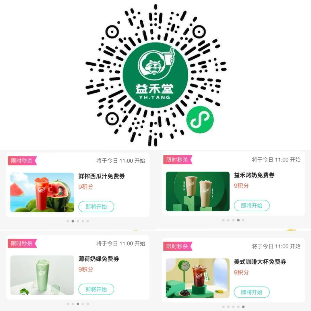今天11点益禾堂9积fen可换