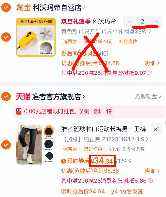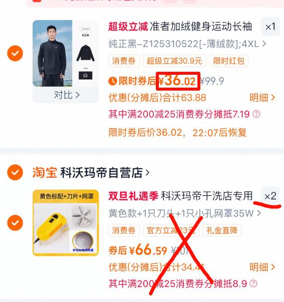 2、凑单商品加购2件
