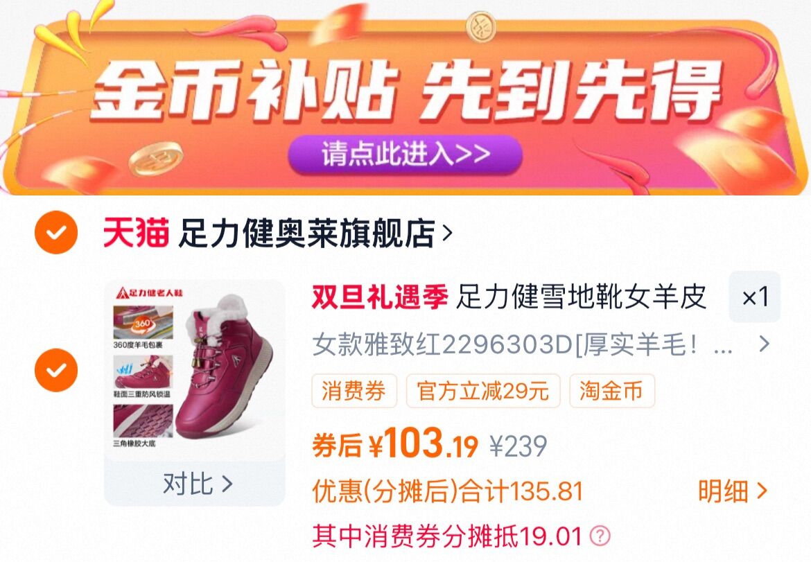 足力健 羊毛 雪地靴