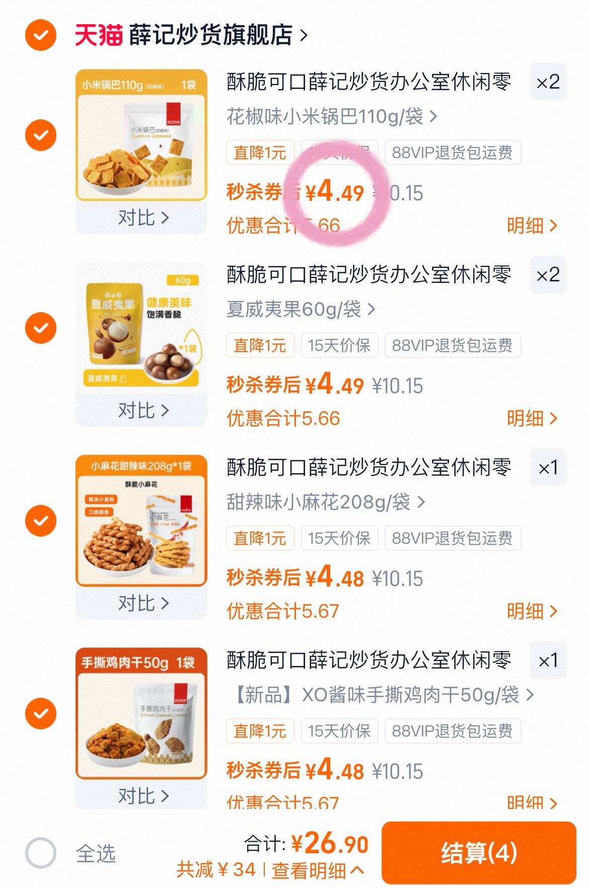 4.4块一件薛记炒货零食合集