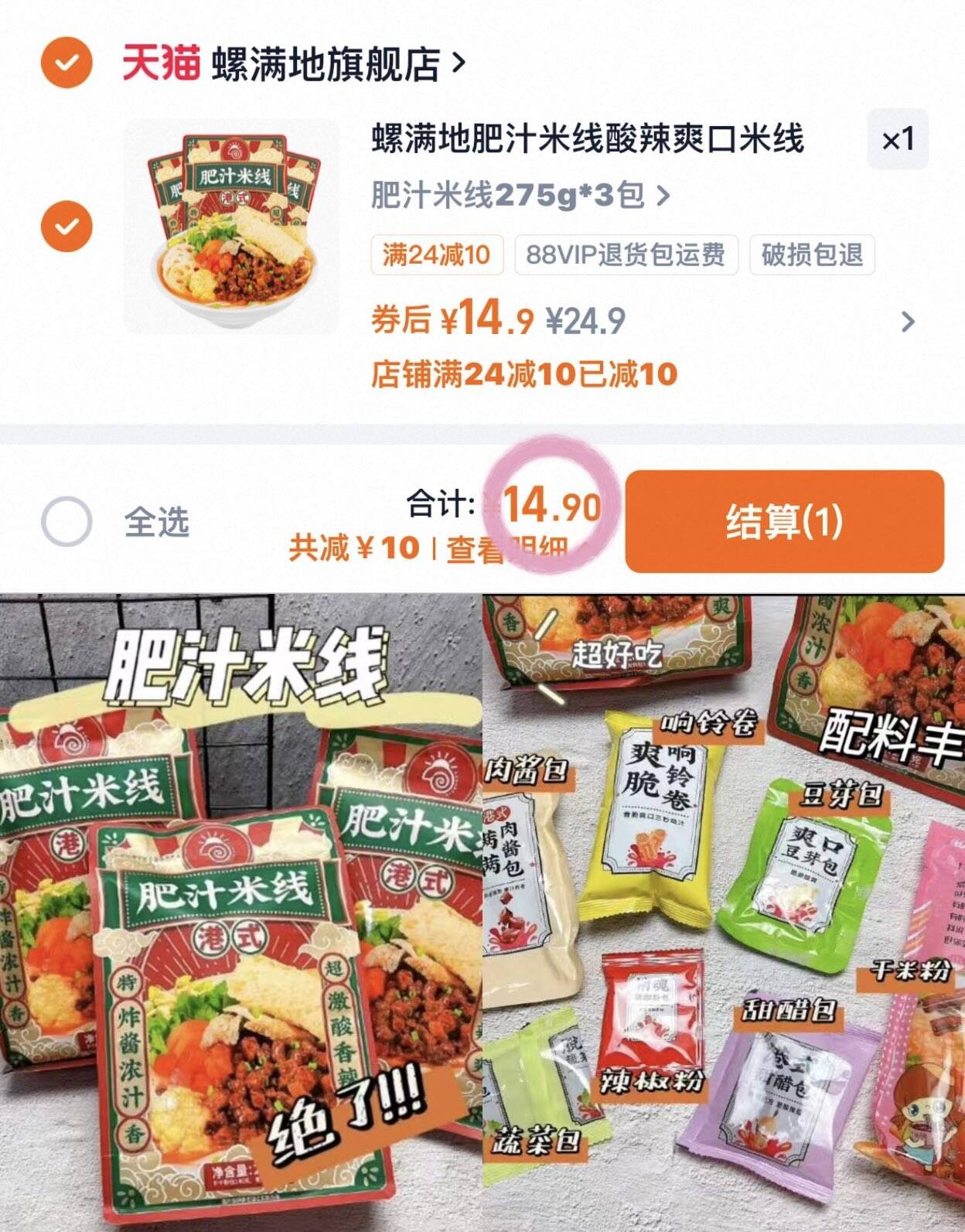 到手3包*275g元14.9