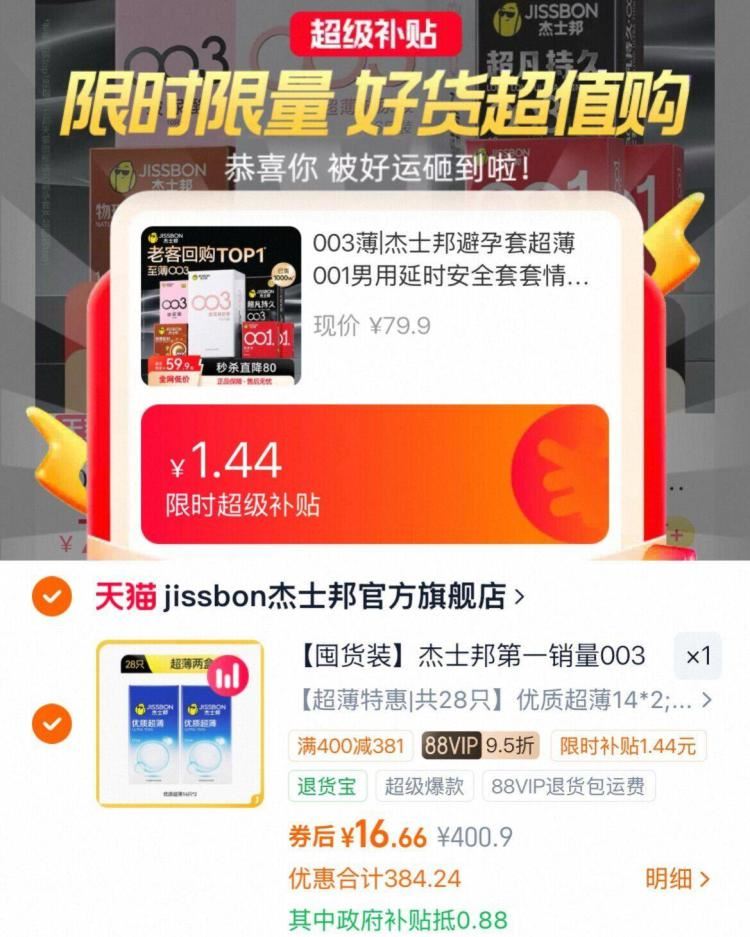 速度5毛/只杰士邦