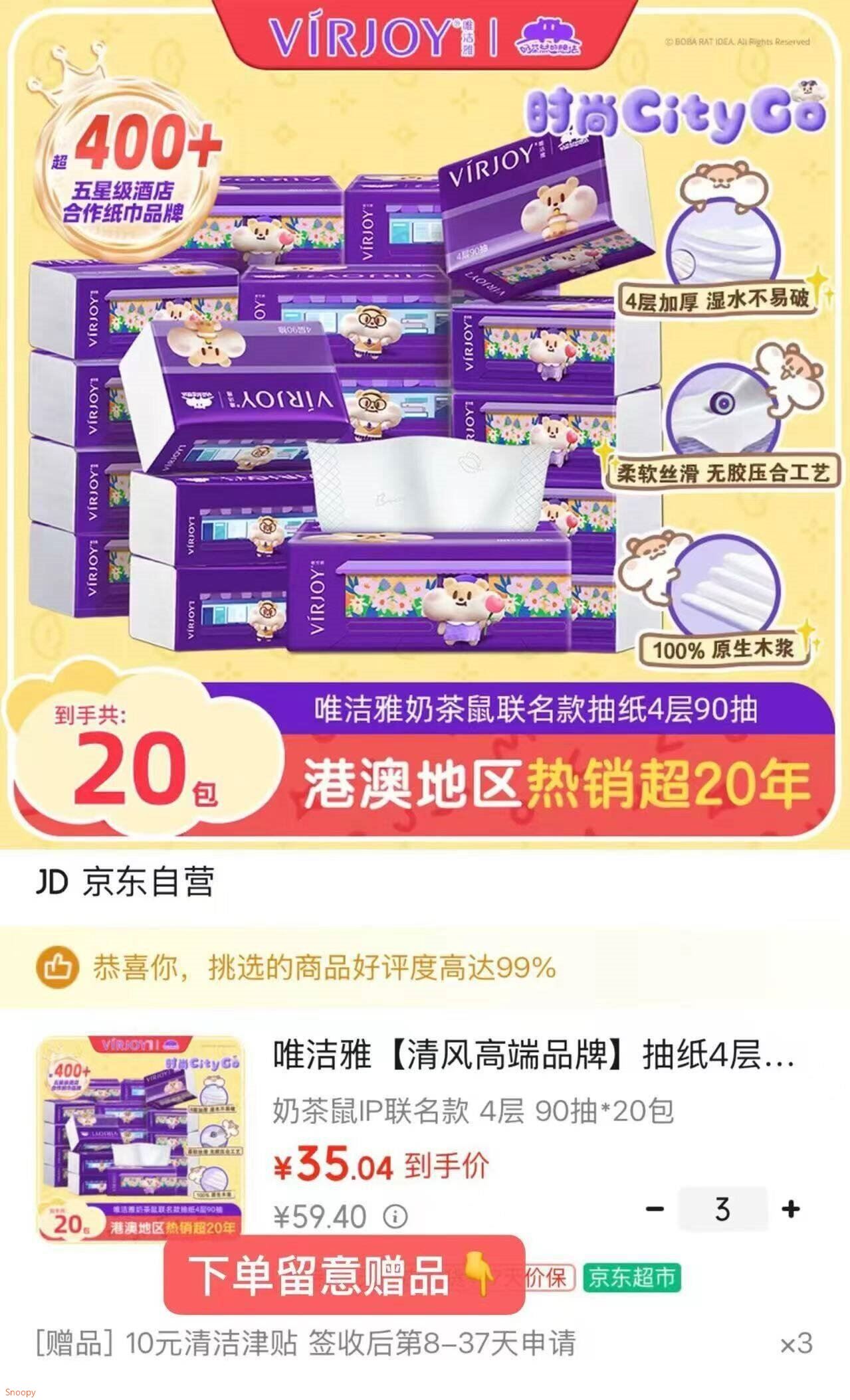 奶茶鼠歀抽纸4层90抽*20包