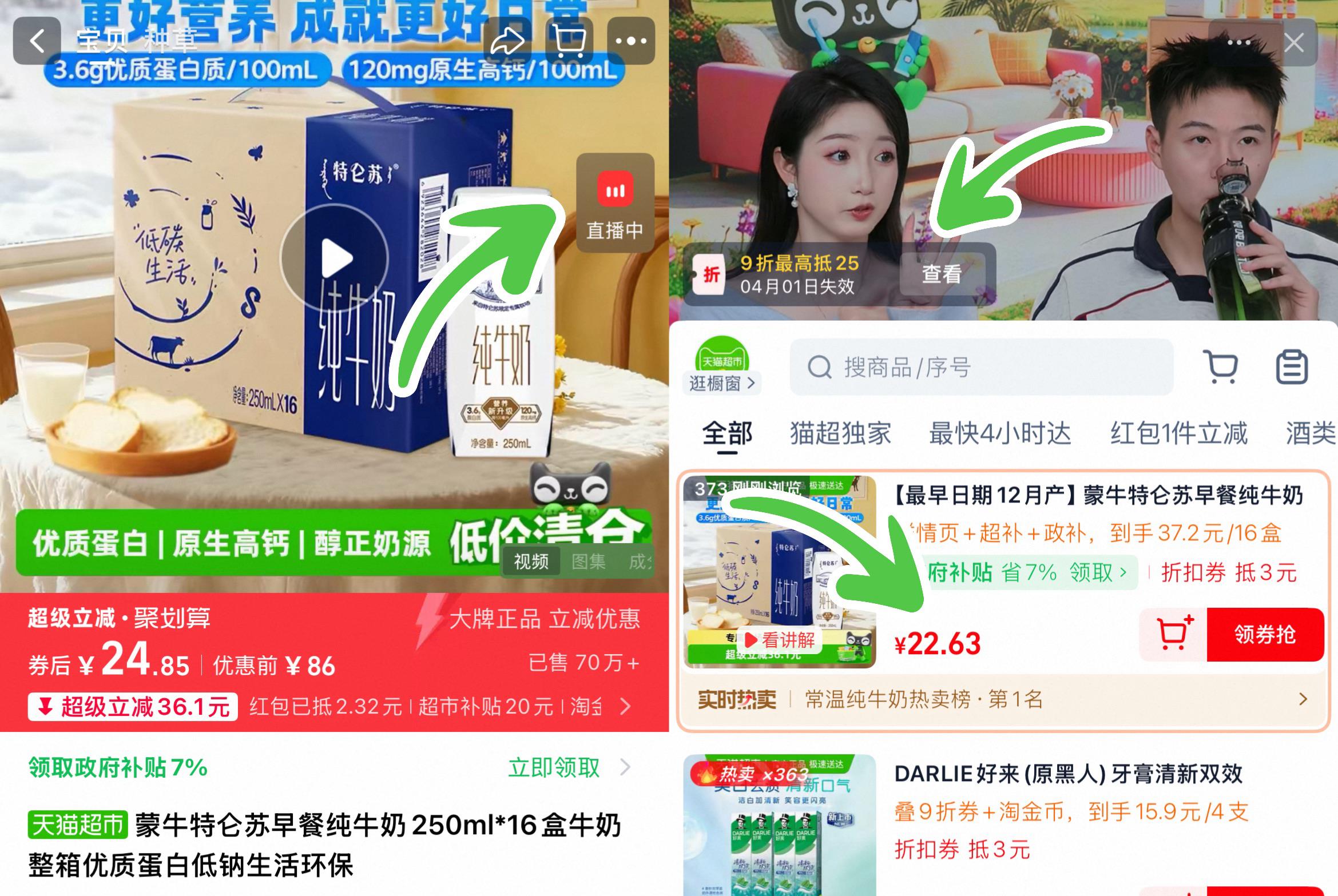 ①右上角进直播,领9折券加1件
